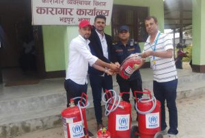 झापा । झापा कारागार भद्रपुरमा पाँच वटा आगो नियन्त्रण गर्न रिजर्भ ट्याङ्की (फायर मेसिन) जडान गरिएको छ। आगलागीबाट हुने कैदी बन्दीको मानवीय दुर्घटनालाई लक्षित गरी झापा कारागारलाई यूएनएचसिआरले २५ केजी तीन वटा र १० केजीको दुई वटा गरी जम्मा पाँच वटा फायर मेसिन उपलब्ध गराएको हो यूएनएचसिआरका प्रतिनिधि हेमकृष्ण श्रेष्ठले कारागारमा पुगेर कारागारका जेलर राजेन्द्र निरौला र चौकीदार मोहन धिताललाई सो मेसिन शुक्रवार हस्तान्तरण गरेका हुन्। सो पाँच वटा मेसिनको मूल्य एक लाख ५० हजार रहेको जनाइएको छ।