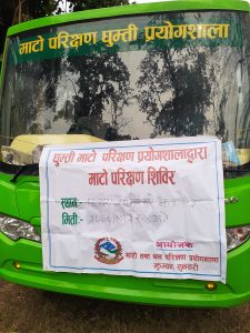 घुम्ती माटो परीक्षण प्रयोगशाला अन्तर्गत परीक्षणको सामग्री रहेको बसमा नमूना माटो परीक्षण गरिएको नगरको कृषि शाखा प्रमुख सावित्रा कार्कीले बताए । जसमा, अधिकांश माटोमा प्रांगारिक पदार्थ, नाइट्रोजन र पोटासको कमि पाइएको छ । अधिकांश माटोमा अम्लियपन बढी देखिएको परीक्षणमा सामेल माटो विज्ञ दिगम्वर यादवले जनाए ।