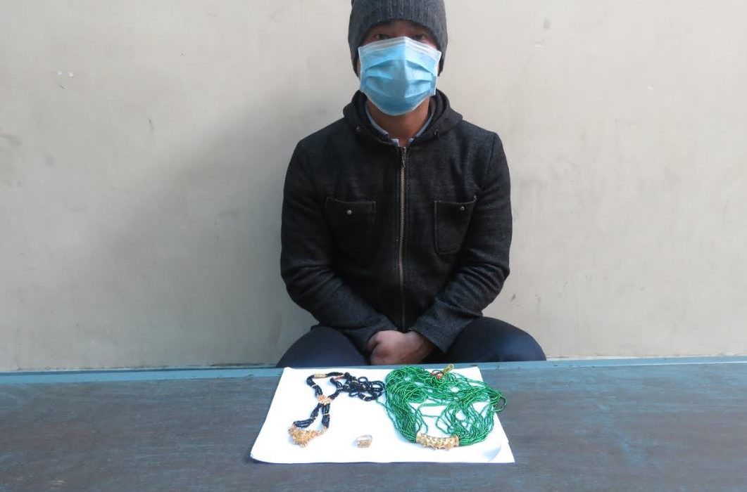 गत मंगलबार कञ्चनपुर बेदकोट नगरपालिका–७, गाउजी घर भई विराटनगर बसेर राष्ट्रिय मानव अधिकार आयोग १ नं. प्रदेश कार्यालयमा सुरक्षा गार्डको रूपमा कार्यरत ३३ वर्षीय शेरसिंह दर्लामी मगरले सुनका गरगहना चोरेका थिए । मंगलशुत्रसहितको प्याण्डल–१ थान, तिलहरी–१ थान, औँठी २ थान, बाला २ सेट, कानमा लगाउने झुम्का १ सेट समेत चोरी गरी लगेकोमा उक्त गहनामध्येबाट मंगलसुत्र, औँठी र तिलहरीसहित बिहीबार उनकै घरबाट पक्राउ परेका हुन् ।