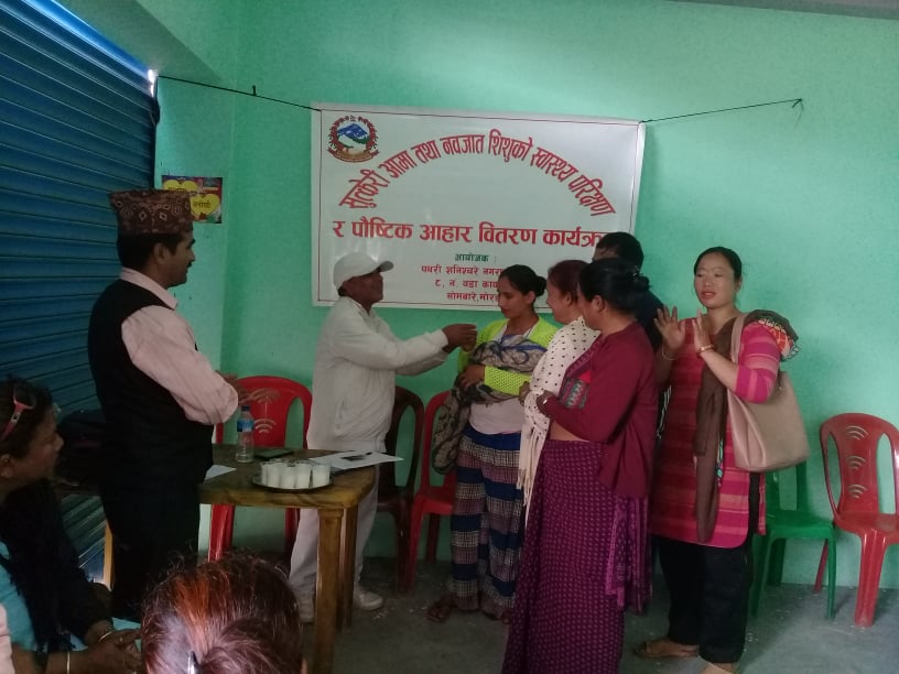 अर्पना केशी । पथरीशनिश्चरे । मोरङको पथरी शनिश्चर वडा नं ८ ले आज सुत्केरी आमाहरुलाई भत्ता वितरण तथा नवजातशिशुहरुलाई निशुल्क स्वास्थ्य परिक्षण र पौष्टीक आहारा वितरण गरेको छ ।