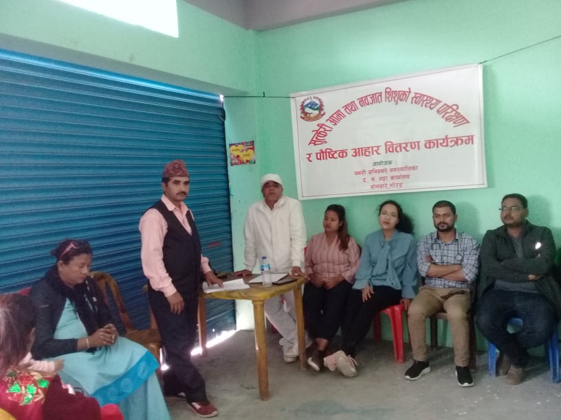 वडा अध्यक्ष बाबुराम दाहालको सभापतित्वमा सम्पन्न भएको कार्यक्रममा वडाले यो कार्यक्रम यो चालु आर्थिक वर्षबाट सुरु गरेको हो । यो कार्यक्रमलाई आगामी वर्षहरुमा पनि निरनतर अगाढी बढाउदै लाने बताएकाछन् । उनले आमानिरोगी र पोषणयुक्त भए जन्मदिने शिशु पनि निरोगी हुने बताएकाहुन् । कार्यक्रमको संचालन सचिव लिलाराज भट्टराईले गरेका थिए ।