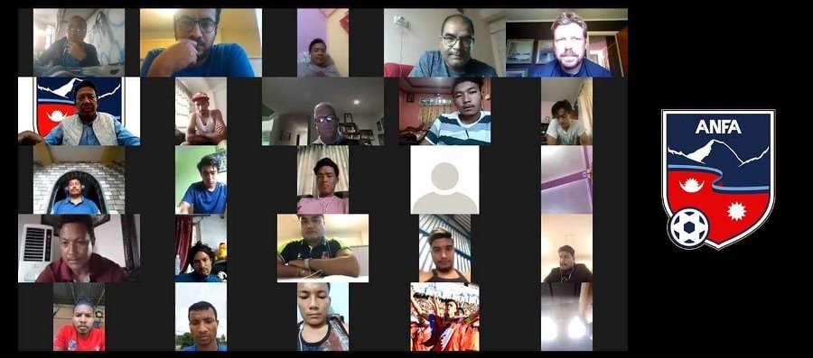 काठमाडौं । नेपाली राष्ट्रिय फुटबल टिमले फिफा विश्वकप छनोट अन्तर्गत घरेलु मैदानमा हुने खेलको तयारीबारे छलफल गरेको छ। भिडियो कन्फरेन्सको माध्यमबाट राष्ट्रिय टिमका खेलाडीले शुक्रबार घरेलु खेलबारे छलफल गरेको हो । छलफलमा राष्ट्रिय टिमका खेलाडीहरु, मुख्य प्रशिक्षक योहान कालिन, अखिल नेपाल फुटबल संघ एन्फाका अध्यक्ष कर्मा छिरिङ शेर्पा र एन्फाका पदाधिकारीहरु सहभागी रहेका थिए ।