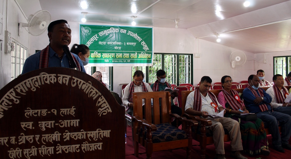 लेटाङ । सामुदायिक वन उपभोक्ता महासंघ (फेकोफन) प्रदेश नं. १ का सचिव अग्नी पौडेलले सामुदायिक वनहरुले वन पैदावरमा मात्र निर्भर नभई पर्यापर्यटनबाट आम्दानी गर्न सुझाव दिएका छन् । सचिव पौडेलले आज (विहीबार) मोरङको लेटाङ–३ स्थित कमलपुर सामुदायिक वन उपभोक्ता समुहको २१औं वार्षिक साधारणसमालाई सम्बोधन गर्दै यस्तो बताएका हुन् ।