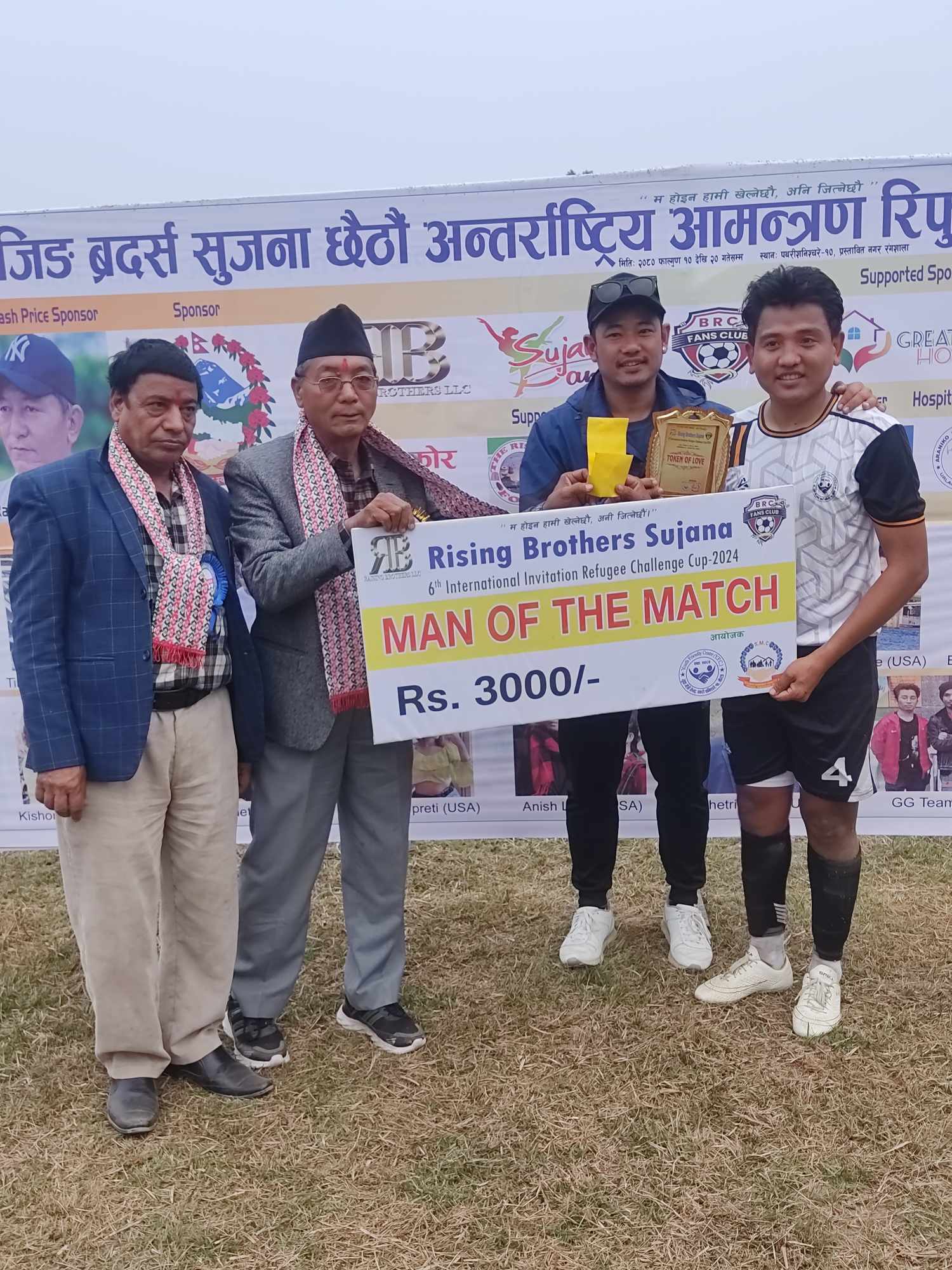 पथरी । मोरङको पथरीशनिश्चरे १० को प्रस्तावित खेलमैदानमा जारी राइजिङ ब्रदर्स सुजना छैटौं अन्तर्राष्ट्रिय आमन्त्रित रिफुजी च्यालेन्ज कप -२०२४ को खेलमा वाई एफ सी विजयी भएको छ। मंगलबार भएको प्रतियोगिताको क्वाटरफाइनलको पहिलो खेलमा डाँगीहाट फुटबल क्लब मोरङ विरूद्ध १ -० को गोल अन्तरले पथरीको वाई एफ सी विजयी भयो।